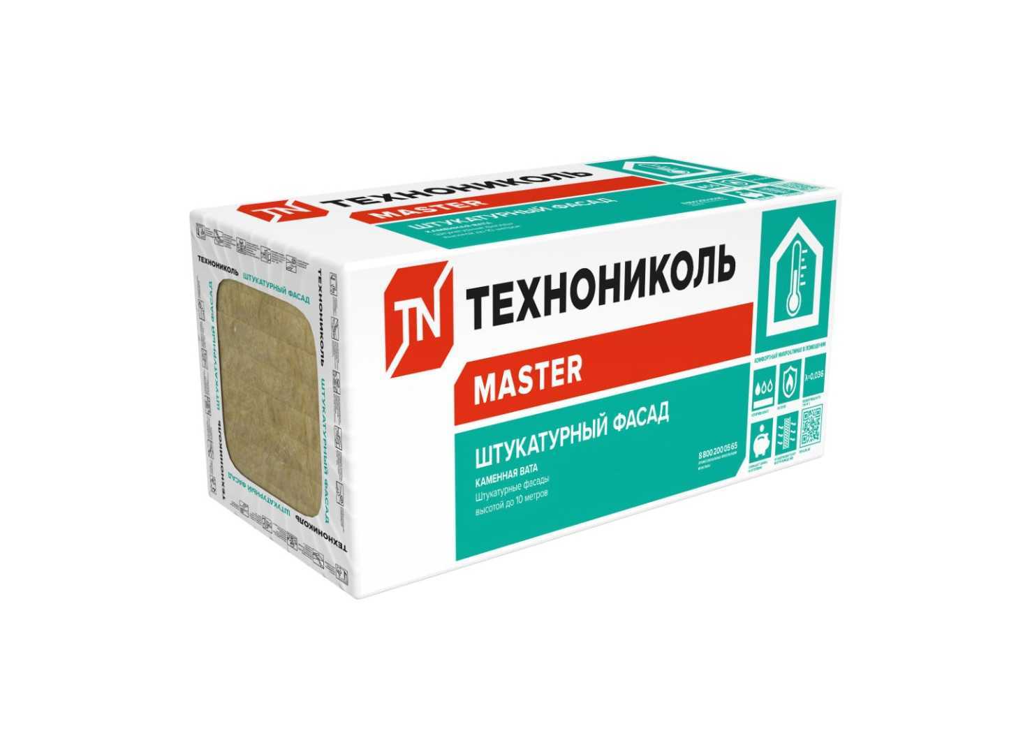 Каменная вата «Штукатурный фасад» выпускается в виде плит. Применяется при наружном утеплении и звукоизоляции фасадов высотой до 10 м под штукатурку. Плиты монтируются при помощи дюбелей, после чего поверхность армируется стеклотканью, крепящейся на клеевой раствор. После затвердевания и покрытия грунтовкой выполняется отделка декоративной штукатуркой с последующим окрашиванием. Страна производства — Россия.
